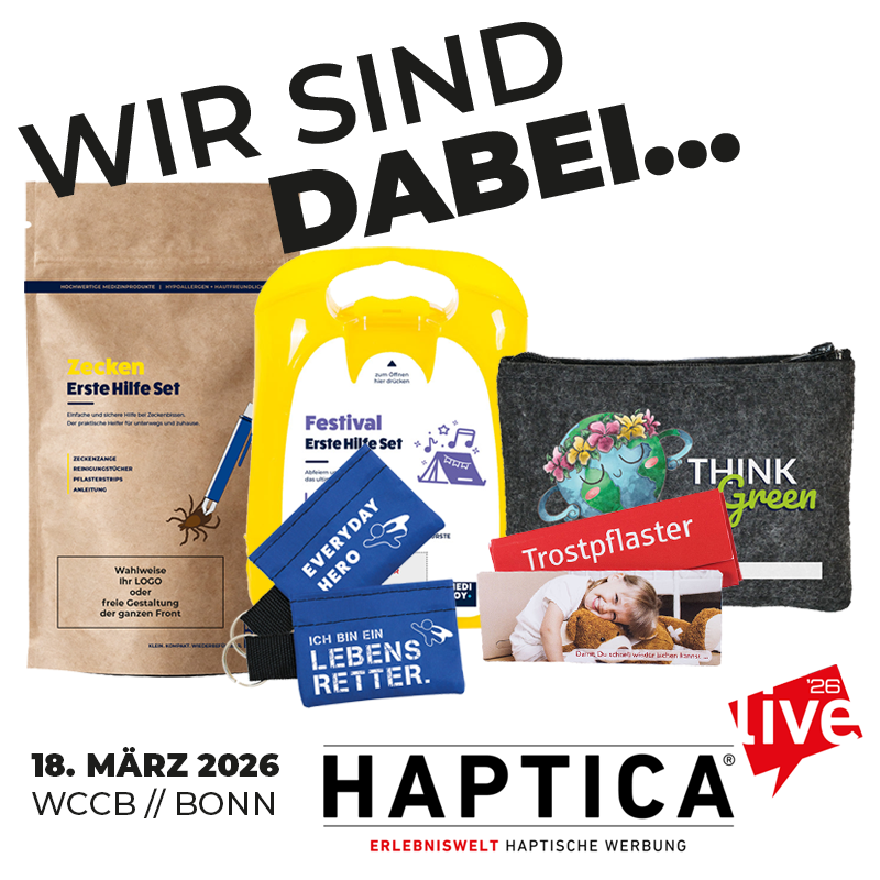 Ob Verbandtasche, Pflastermäppchen oder Erste Hilfe Set: Mit Erste Hilfe Werbeartikeln bieten Sie Ihren Kunden wichtigen Schutz in Notfallsituationen und wecken positive Emotionen.