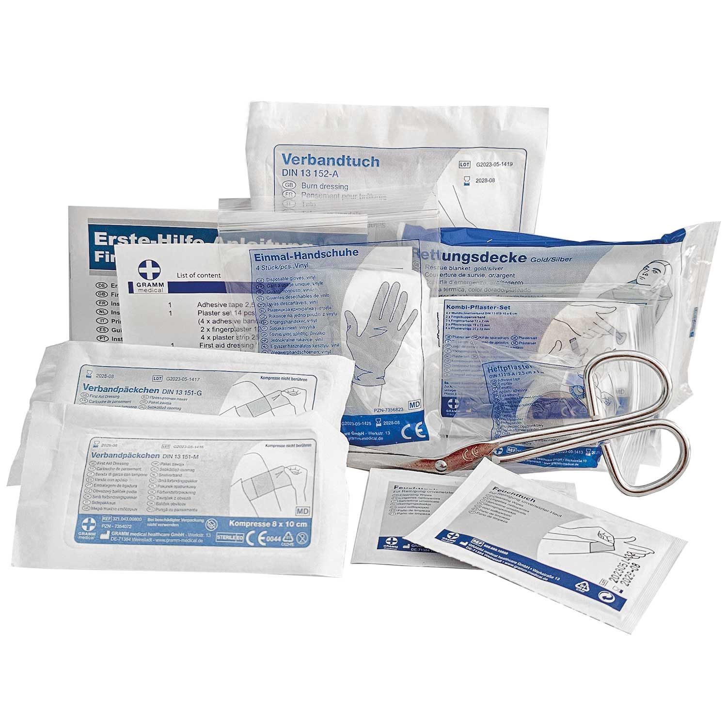 Alle im Set enthaltenen Erste Hilfe Produkte erfüllen alle geltenden EU-Vorschriften.